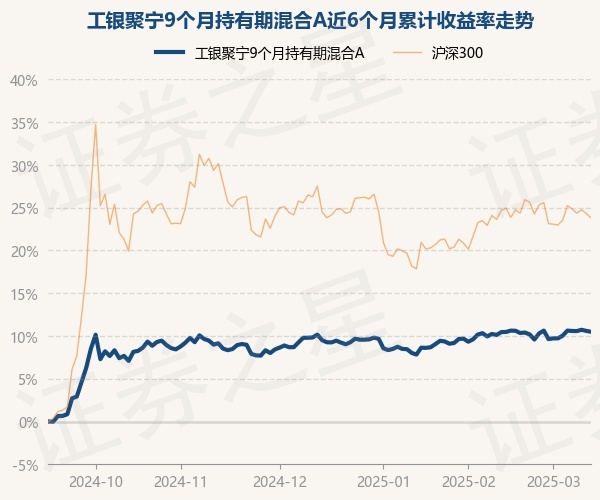 证券之星消息,3月13日,工银聚宁9个月持有期混合A最新单位净值为1.0734元,累计净值为1.0734元,较前一交易日下跌0.09%。历史数据显示该基金近1个月上涨0.34%,近3个月上涨0.89%,近6个月上涨10.49%,近1年上涨8.28%。该基金近6个月的累计收益率走势如下图: