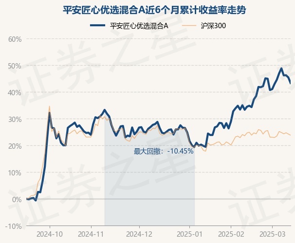 证券之星消息,3月13日,平安匠心优选混合A最新单位净值为1.1152元,累计净值为1.3522元,较前一交易日下跌1.46%。历史数据显示该基金近1个月上涨7.5%,近3个月上涨13.31%,近6个月上涨43.34%,近1年上涨29.58%。该基金近6个月的累计收益率走势如下图: