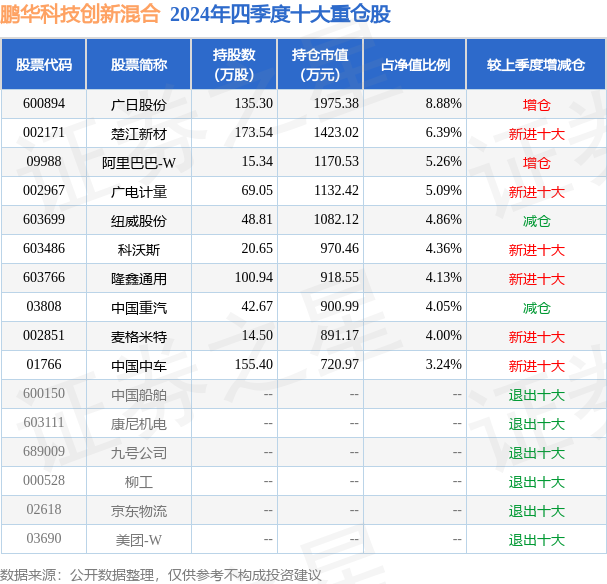 鹏华科技创新混合为混合型-偏股基金,根据最新一期基金季报显示,该基金资产配置:股票占净值比91.08%,无债券类资产,现金占净值比6.91%。基金十大重仓股如下: