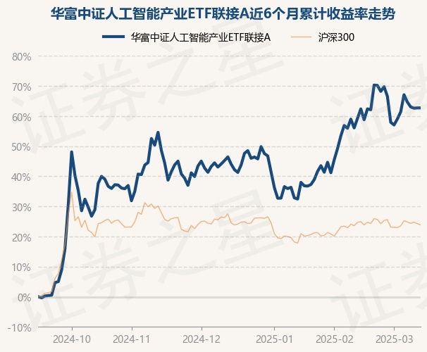 证券之星消息,3月13日,华富中证人工智能产业ETF联接A最新单位净值为0.9594元,累计净值为0.9594元,较前一交易日上涨0.0%。历史数据显示该基金近1个月上涨1.9%,近3个月上涨10.42%,近6个月上涨59.03%,近1年上涨29.6%。该基金近6个月的累计收益率走势如下图: