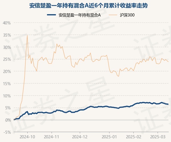 证券之星消息,3月13日,安信楚盈一年持有混合A最新单位净值为1.0298元,累计净值为1.0298元,较前一交易日下跌0.07%。历史数据显示该基金近1个月下跌0.53%,近3个月上涨0.9%,近6个月上涨6.36%,近1年上涨6.21%。该基金近6个月的累计收益率走势如下图: