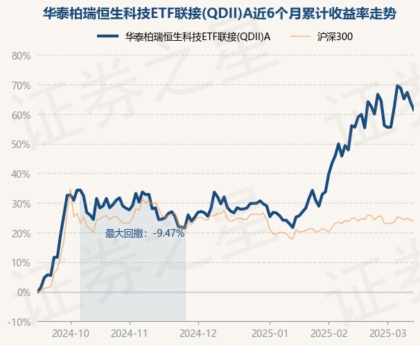 证券之星消息,3月13日,华泰柏瑞恒生科技ETF联接(QDII)A最新单位净值为1.385元,累计净值为1.385元,较前一交易日下跌1.63%。历史数据显示该基金近1个月上涨9.18%,近3个月上涨25.76%,近6个月上涨61.46%,近1年上涨56.46%。该基金近6个月的累计收益率走势如下图: