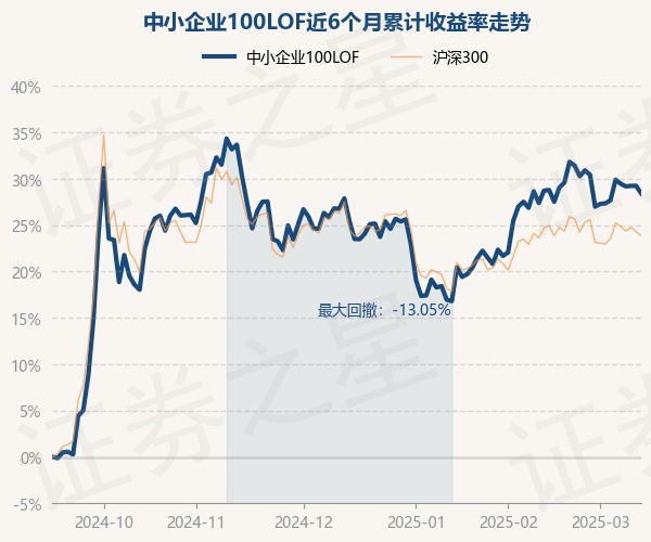 证券之星消息,3月13日,中小企业100LOF最新单位净值为1.1895元,累计净值为1.1895元,较前一交易日下跌0.63%。历史数据显示该基金近1个月上涨0.81%,近3个月上涨2.38%,近6个月上涨28.41%,近1年上涨14.66%。该基金近6个月的累计收益率走势如下图: