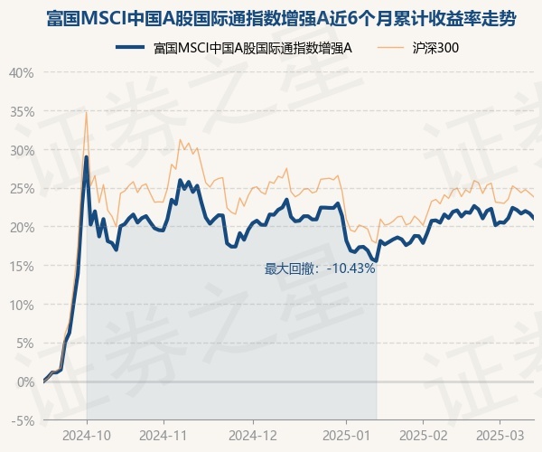 证券之星消息,3月13日,富国MSCI中国A股国际通指数增强A最新单位净值为2.0177元,累计净值为2.0177元,较前一交易日下跌0.5%。历史数据显示该基金近1个月上涨0.0%,近3个月下跌0.13%,近6个月上涨21.07%,近1年上涨10.31%。该基金近6个月的累计收益率走势如下图: