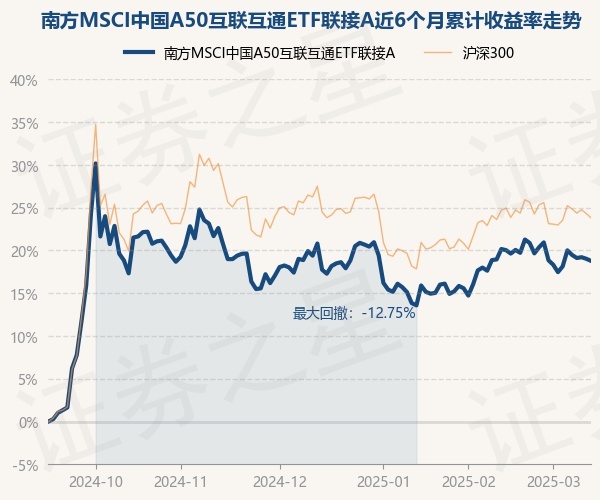 证券之星消息,3月13日,南方MSCI中国A50互联互通ETF联接A最新单位净值为0.9198元,累计净值为0.9198元,较前一交易日下跌0.21%。历史数据显示该基金近1个月下跌0.14%,近3个月上涨0.88%,近6个月上涨18.78%,近1年上涨13.19%。该基金近6个月的累计收益率走势如下图: