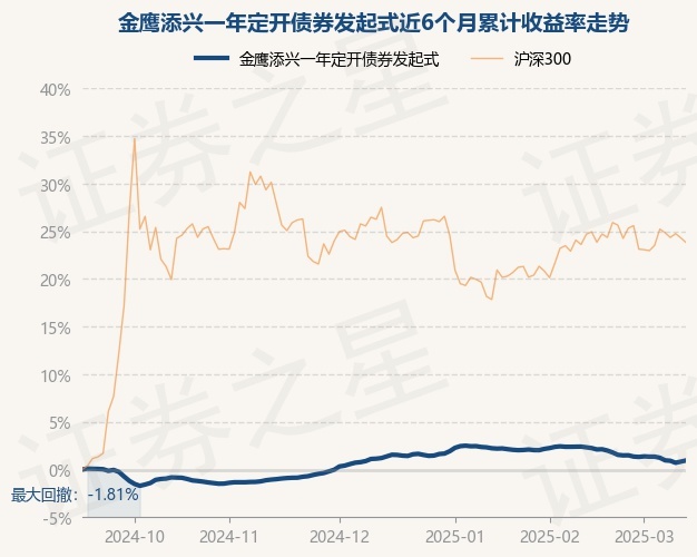 证券之星消息,3月13日,金鹰添兴一年定开债券发起式最新单位净值为1.0528元,累计净值为1.0528元,较前一交易日上涨0.12%。历史数据显示该基金近1个月下跌1.41%,近3个月下跌0.42%,近6个月上涨0.96%,近1年上涨3.29%。该基金近6个月的累计收益率走势如下图: