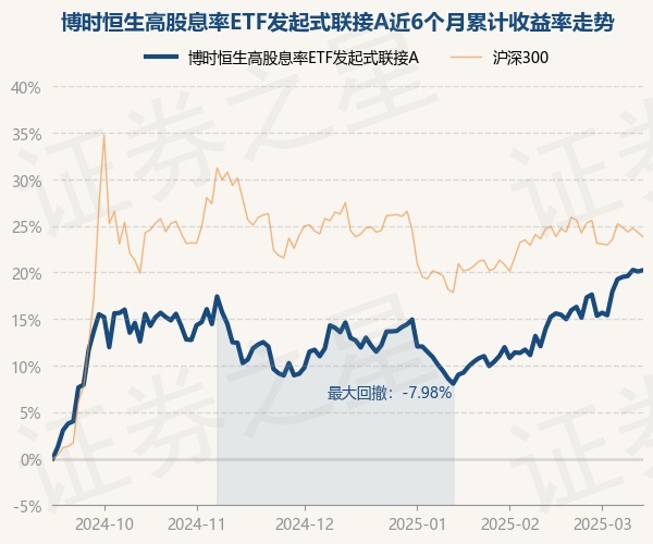 证券之星消息,3月13日,博时恒生高股息率ETF发起式联接A最新单位净值为1.0478元,累计净值为1.0478元,较前一交易日上涨0.12%。历史数据显示该基金近1个月上涨7.29%,近3个月上涨6.44%,近6个月上涨20.24%,近1年上涨21.32%。该基金近6个月的累计收益率走势如下图: