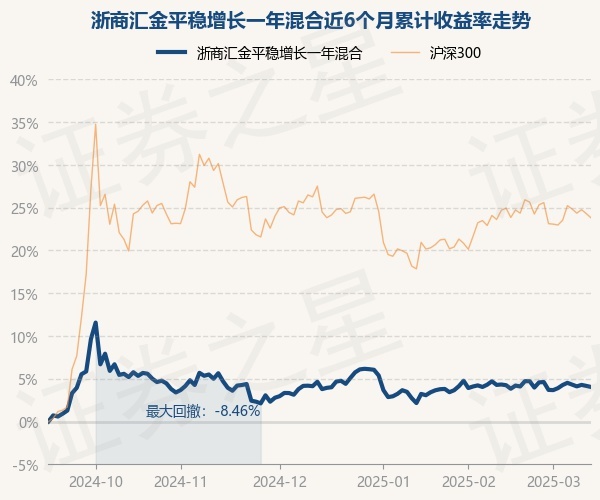 证券之星消息,3月13日,浙商汇金平稳增长一年混合最新单位净值为0.9072元,累计净值为2.433元,较前一交易日下跌0.12%。历史数据显示该基金近1个月下跌0.23%,近3个月上涨0.24%,近6个月上涨4.04%,近1年上涨1.43%。该基金近6个月的累计收益率走势如下图: