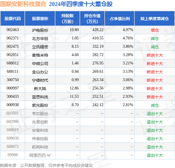 国联安新科技混合为混合型-偏股基金,根据最新一期基金季报显示,该基金资产配置:股票占净值比87.83%,无债券类资产,现金占净值比13.33%。基金十大重仓股如下: