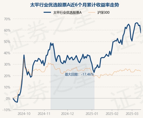 证券之星消息,3月13日,太平行业优选股票A最新单位净值为0.9454元,累计净值为0.9954元,较前一交易日下跌3.96%。历史数据显示该基金近1个月上涨5.65%,近3个月上涨16.99%,近6个月上涨57.7%,近1年上涨50.88%。该基金近6个月的累计收益率走势如下图: