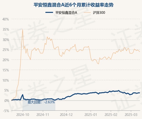 证券之星消息,3月13日,平安恒鑫混合A最新单位净值为0.9606元,累计净值为0.9606元,较前一交易日下跌0.05%。历史数据显示该基金近1个月下跌0.81%,近3个月上涨0.53%,近6个月上涨3.65%,近1年上涨2.23%。该基金近6个月的累计收益率走势如下图: