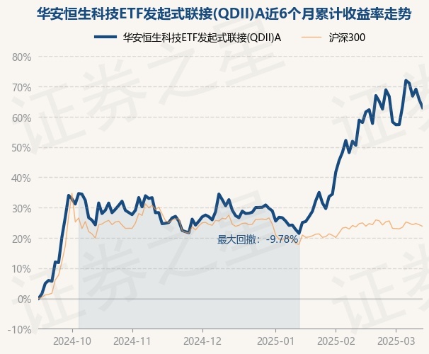 证券之星消息,3月13日,华安恒生科技ETF发起式联接(QDII)A最新单位净值为1.4666元,累计净值为1.4666元,较前一交易日下跌1.58%。历史数据显示该基金近1个月上涨8.27%,近3个月上涨26.19%,近6个月上涨62.99%,近1年上涨55.66%。该基金近6个月的累计收益率走势如下图: