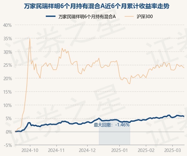证券之星消息,3月13日,万家民瑞祥明6个月持有混合A最新单位净值为1.0295元,累计净值为1.0295元,较前一交易日下跌0.25%。历史数据显示该基金近1个月上涨0.54%,近3个月上涨1.0%,近6个月上涨5.6%,近1年上涨4.32%。该基金近6个月的累计收益率走势如下图:
