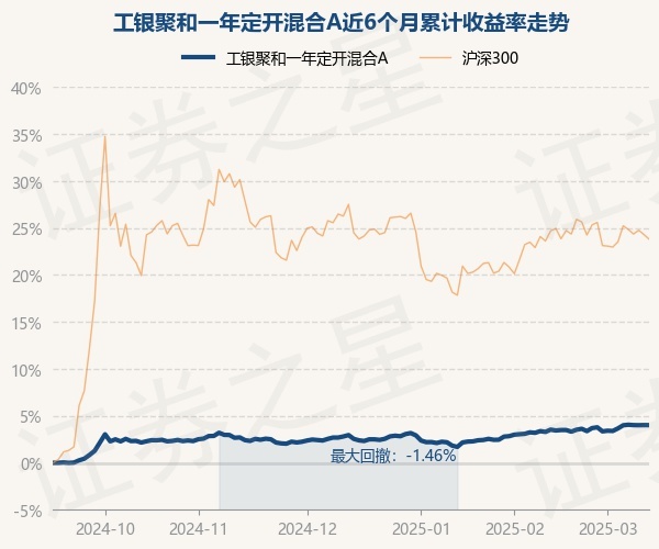 证券之星消息,3月13日,工银聚和一年定开混合A最新单位净值为1.2573元,累计净值为1.2573元,较前一交易日上涨0.0%。历史数据显示该基金近1个月上涨0.66%,近3个月上涨1.4%,近6个月上涨3.98%,近1年上涨5.27%。该基金近6个月的累计收益率走势如下图: