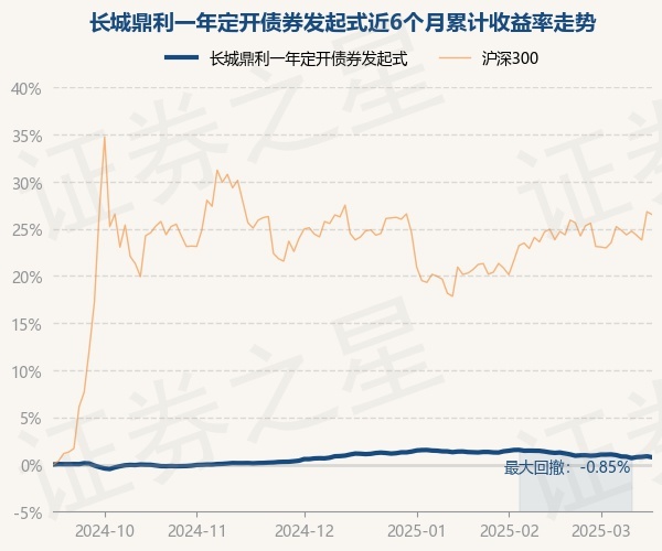 证券之星消息,3月13日,长城鼎利一年定开债券发起式最新单位净值为1.0103元,累计净值为1.0748元,较前一交易日上涨0.03%。历史数据显示该基金近1个月下跌0.63%,近3个月下跌0.25%,近6个月上涨0.81%,近1年上涨2.55%。该基金近6个月的累计收益率走势如下图:
