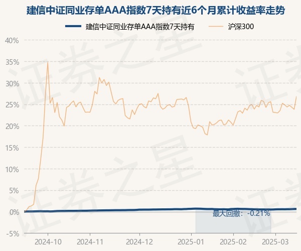 证券之星消息,3月13日,建信中证同业存单AAA指数7天持有最新单位净值为1.0516元,累计净值为1.0516元,较前一交易日上涨0.03%。历史数据显示该基金近1个月上涨0.01%,近3个月上涨0.1%,近6个月上涨0.6%,近1年上涨1.62%。该基金近6个月的累计收益率走势如下图:
