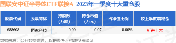 国联安中证半导体ETF联接A为指数型-股票基金,根据最新一期基金季报显示,该基金资产配置:无股票类资产,债券占净值比0.25%,现金占净值比6.8%。基金十大重仓股如下: