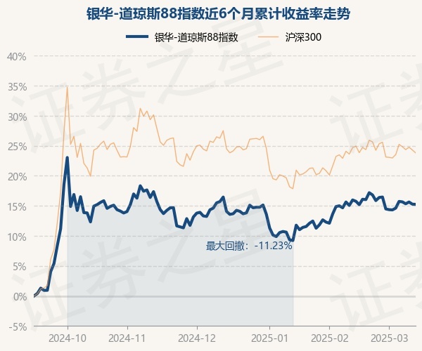 证券之星消息,3月13日,银华-道琼斯88指数最新单位净值为1.0871元,累计净值为3.3304元,较前一交易日下跌0.03%。历史数据显示该基金近1个月上涨0.16%,近3个月上涨1.02%,近6个月上涨15.24%,近1年上涨4.11%。该基金近6个月的累计收益率走势如下图: