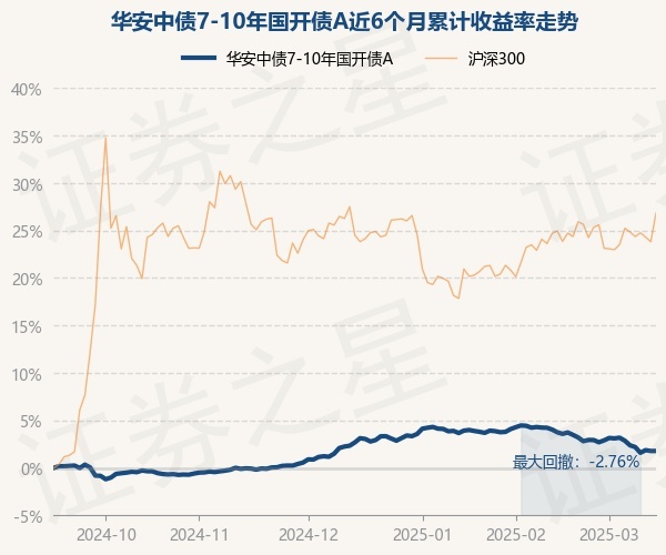 证券之星消息,3月13日,华安中债7-10年国开债A最新单位净值为1.1737元,累计净值为1.247元,较前一交易日下跌0.09%。历史数据显示该基金近1个月下跌2.35%,近3个月下跌0.88%,近6个月上涨1.78%,近1年上涨6.2%。该基金近6个月的累计收益率走势如下图: