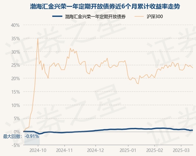 证券之星消息,3月13日,渤海汇金兴荣一年定期开放债券最新单位净值为1.0399元,累计净值为1.1103元,较前一交易日上涨0.02%。历史数据显示该基金近1个月下跌0.74%,近3个月下跌0.26%,近6个月上涨0.49%,近1年上涨2.42%。该基金近6个月的累计收益率走势如下图: