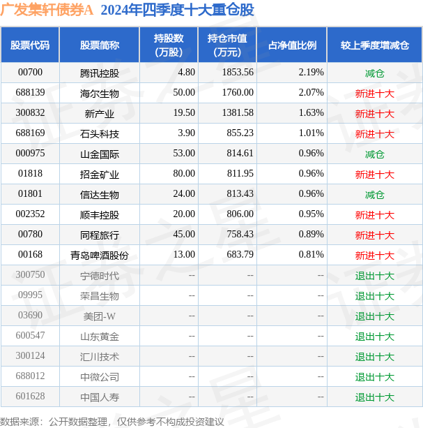 广发集轩债券A为债券型-混合二级基金,根据最新一期基金季报显示,该基金资产配置:股票占净值比19.35%,债券占净值比96.78%,现金占净值比2.49%。基金十大重仓股如下: