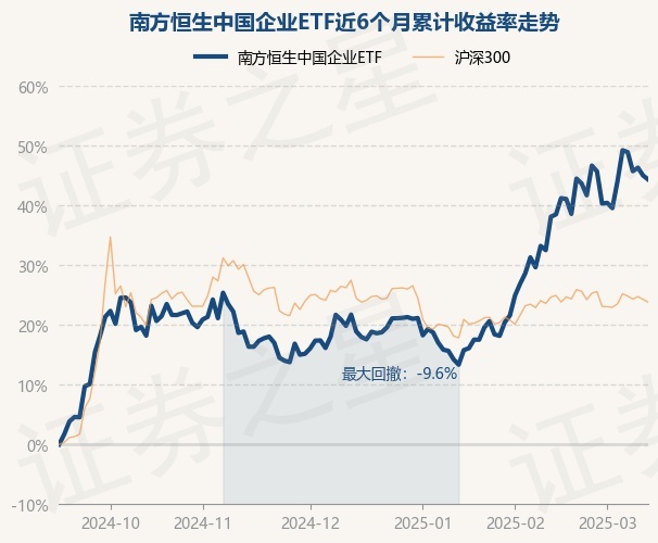 证券之星消息,3月13日,南方恒生中国企业ETF最新单位净值为0.9951元,累计净值为0.9951元,较前一交易日下跌0.46%。历史数据显示该基金近1个月上涨8.92%,近3个月上涨21.38%,近6个月上涨44.36%,近1年上涨57.33%。该基金近6个月的累计收益率走势如下图: