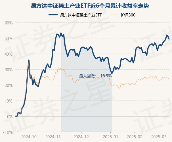 证券之星消息,3月13日,易方达中证稀土产业ETF最新单位净值为0.7447元,累计净值为0.7447元,较前一交易日下跌1.33%。历史数据显示该基金近1个月上涨5.84%,近3个月上涨6.11%,近6个月上涨48.97%,近1年上涨28.18%。该基金近6个月的累计收益率走势如下图:
