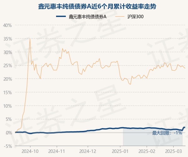 证券之星消息,3月13日,鑫元惠丰纯债债券A最新单位净值为1.0266元,累计净值为1.09元,较前一交易日上涨0.02%。历史数据显示该基金近1个月上涨0.28%,近3个月上涨0.66%,近6个月上涨1.86%,近1年上涨4.4%。该基金近6个月的累计收益率走势如下图: