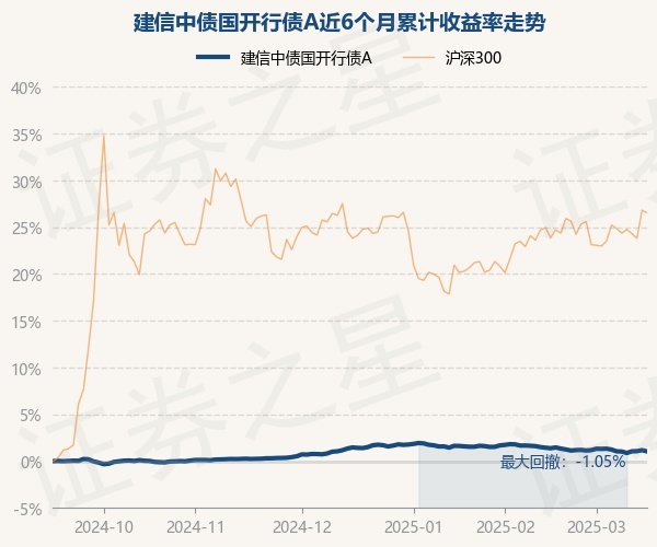 证券之星消息,3月13日,建信中债国开行债A最新单位净值为1.072元,累计净值为1.232元,较前一交易日上涨0.02%。历史数据显示该基金近1个月下跌0.53%,近3个月下跌0.28%,近6个月上涨1.07%,近1年上涨3.93%。该基金近6个月的累计收益率走势如下图: