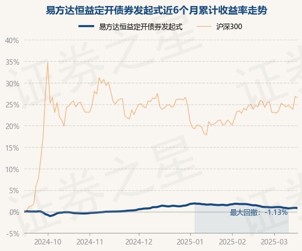 证券之星消息,3月13日,易方达恒益定开债券发起式最新单位净值为1.0198元,累计净值为1.2998元,较前一交易日上涨0.06%。历史数据显示该基金近1个月下跌0.89%,近3个月下跌0.39%,近6个月上涨0.84%,近1年上涨3.26%。该基金近6个月的累计收益率走势如下图: