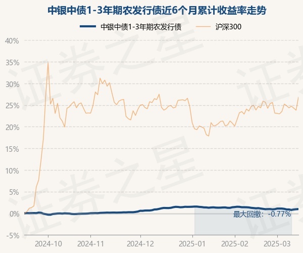 证券之星消息,3月13日,中银中债1-3年期农发行债最新单位净值为1.0375元,累计净值为1.1634元,较前一交易日上涨0.06%。历史数据显示该基金近1个月下跌0.41%,近3个月下跌0.21%,近6个月上涨0.93%,近1年上涨2.92%。该基金近6个月的累计收益率走势如下图: