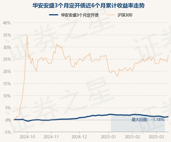 证券之星消息,3月13日,华安安盛3个月定开债最新单位净值为1.061元,累计净值为1.2338元,较前一交易日上涨0.04%。历史数据显示该基金近1个月下跌0.85%,近3个月下跌0.42%,近6个月上涨1.15%,近1年上涨3.9%。该基金近6个月的累计收益率走势如下图: