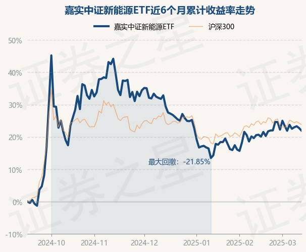 证券之星消息,3月13日,嘉实中证新能源ETF最新单位净值为0.4656元,累计净值为0.4656元,较前一交易日下跌0.64%。历史数据显示该基金近1个月上涨1.95%,近3个月下跌5.73%,近6个月上涨21.98%,近1年下跌6.49%。该基金近6个月的累计收益率走势如下图: