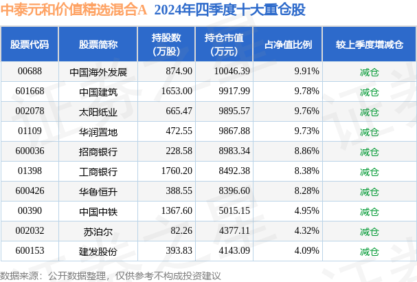 中泰元和价值精选混合A为混合型-偏股基金,根据最新一期基金季报显示,该基金资产配置:股票占净值比92.14%,无债券类资产,现金占净值比8.02%。基金十大重仓股如下: