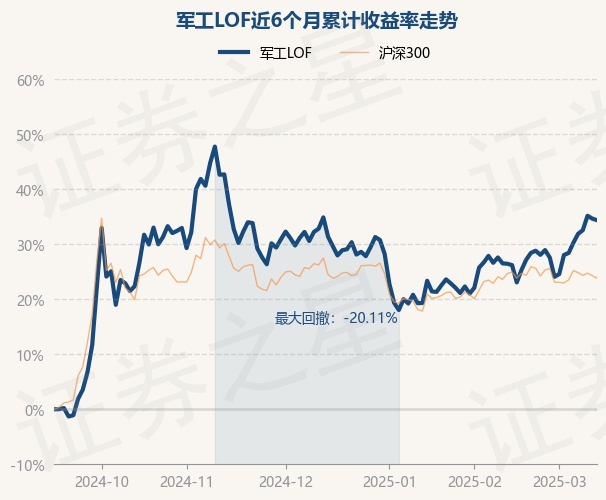 证券之星消息,3月13日,军工LOF最新单位净值为1.3082元,累计净值为0.8428元,较前一交易日下跌0.21%。历史数据显示该基金近1个月上涨6.21%,近3个月上涨2.3%,近6个月上涨34.38%,近1年上涨19.59%。该基金近6个月的累计收益率走势如下图: