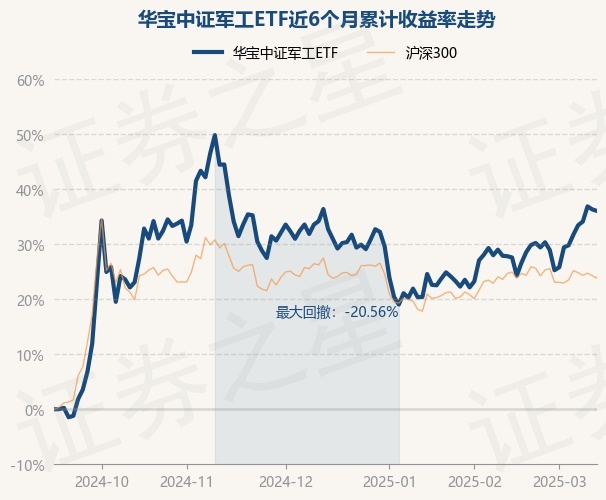 证券之星消息,3月13日,华宝中证军工ETF最新单位净值为1.2605元,累计净值为1.2605元,较前一交易日下跌0.21%。历史数据显示该基金近1个月上涨6.38%,近3个月上涨2.49%,近6个月上涨36.06%,近1年上涨21.19%。该基金近6个月的累计收益率走势如下图: