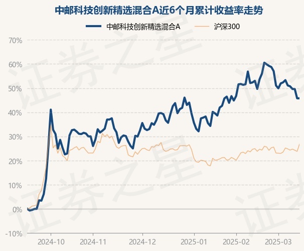 证券之星消息,3月13日,中邮科技创新精选混合A最新单位净值为1.5569元,累计净值为1.8738元,较前一交易日下跌2.57%。历史数据显示该基金近1个月下跌4.16%,近3个月上涨4.71%,近6个月上涨45.78%,近1年上涨32.67%。该基金近6个月的累计收益率走势如下图: