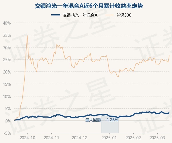 证券之星消息,3月13日,交银鸿光一年混合A最新单位净值为1.0391元,累计净值为1.0391元,较前一交易日下跌0.13%。历史数据显示该基金近1个月下跌0.23%,近3个月上涨0.55%,近6个月上涨2.79%,近1年上涨4.0%。该基金近6个月的累计收益率走势如下图: