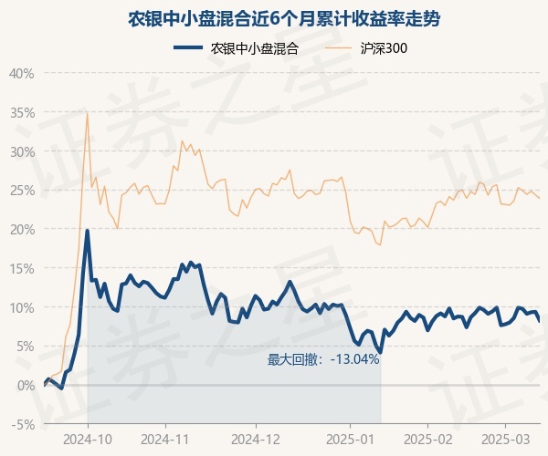 证券之星消息,3月13日,农银中小盘混合最新单位净值为2.6764元,累计净值为3.0384元,较前一交易日下跌1.02%。历史数据显示该基金近1个月下跌0.25%,近3个月下跌3.46%,近6个月上涨8.19%,近1年下跌3.23%。该基金近6个月的累计收益率走势如下图: