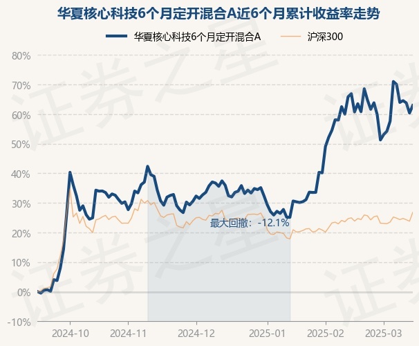 证券之星消息,3月13日,华夏核心科技6个月定开混合A最新单位净值为0.9549元,累计净值为0.9549元,较前一交易日下跌2.09%。历史数据显示该基金近1个月上涨0.24%,近3个月上涨17.95%,近6个月上涨60.35%,近1年上涨32.66%。该基金近6个月的累计收益率走势如下图: