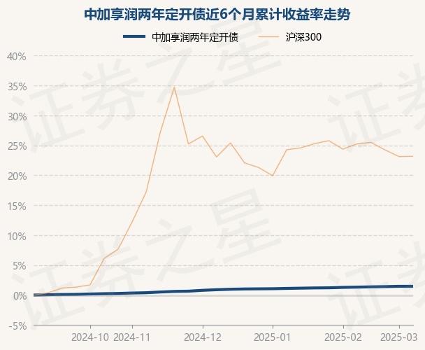 证券之星消息,3月14日,中加享润两年定开债最新单位净值为1.0037元,累计净值为1.1472元,较前一交易日上涨0.0%。历史数据显示该基金近1个月上涨0.19%,近3个月上涨0.61%,近6个月上涨1.5%,近1年上涨2.73%。该基金近6个月的累计收益率走势如下图: