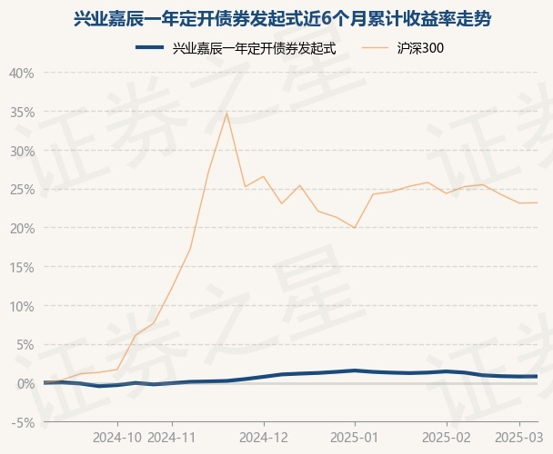 证券之星消息,3月14日,兴业嘉辰一年定开债券发起式最新单位净值为1.0488元,累计净值为1.0488元,较前一交易日上涨0.02%。历史数据显示该基金近1个月下跌0.48%,近3个月下跌0.25%,近6个月上涨0.82%,近1年上涨2.47%。该基金近6个月的累计收益率走势如下图: