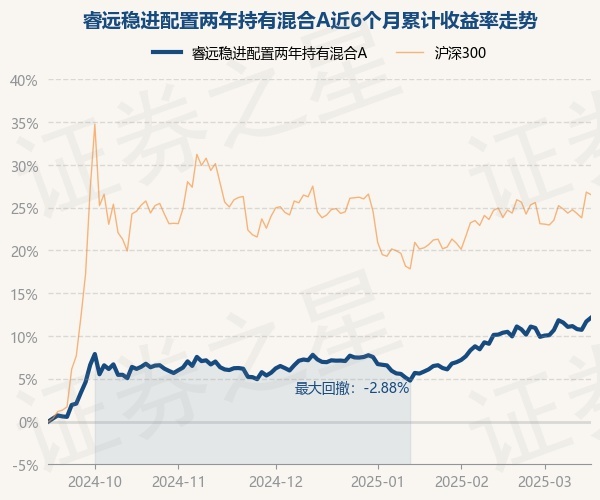 证券之星消息,3月14日,睿远稳进配置两年持有混合A最新单位净值为1.0902元,累计净值为1.0902元,较前一交易日上涨0.88%。历史数据显示该基金近1个月上涨1.42%,近3个月上涨4.14%,近6个月上涨11.69%,近1年上涨14.73%。该基金近6个月的累计收益率走势如下图: