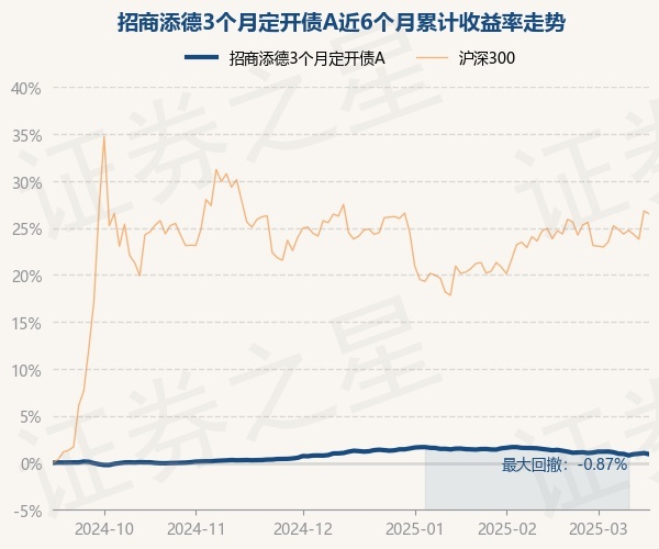 证券之星消息,3月14日,招商添德3个月定开债A最新单位净值为1.1116元,累计净值为1.3312元,较前一交易日上涨0.07%。历史数据显示该基金近1个月下跌0.43%,近3个月下跌0.15%,近6个月上涨1.04%,近1年上涨2.85%。该基金近6个月的累计收益率走势如下图: