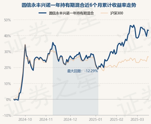 证券之星消息,3月14日,圆信永丰兴诺一年持有期混合最新单位净值为1.0326元,累计净值为1.0326元,较前一交易日上涨2.8%。历史数据显示该基金近1个月上涨5.79%,近3个月上涨13.09%,近6个月上涨43.48%,近1年上涨20.32%。该基金近6个月的累计收益率走势如下图: