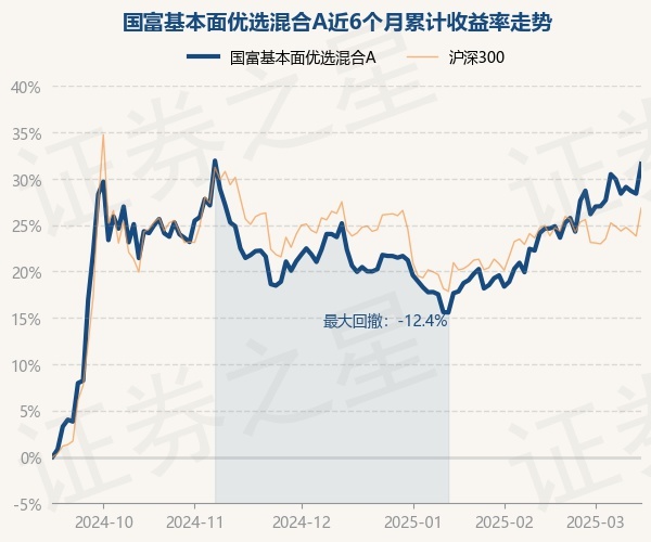 证券之星消息,3月14日,国富基本面优选混合A最新单位净值为1.3853元,累计净值为1.6889元,较前一交易日上涨2.5%。历史数据显示该基金近1个月上涨6.02%,近3个月上涨7.56%,近6个月上涨31.41%,近1年上涨29.71%。该基金近6个月的累计收益率走势如下图: