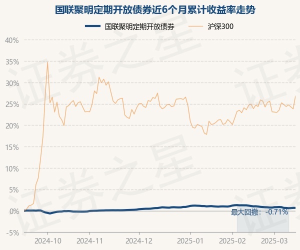 证券之星消息,3月14日,国联聚明定期开放债券最新单位净值为1.0371元,累计净值为1.2635元,较前一交易日上涨0.0%。历史数据显示该基金近1个月下跌0.48%,近3个月下跌0.01%,近6个月上涨0.71%,近1年上涨3.04%。该基金近6个月的累计收益率走势如下图: