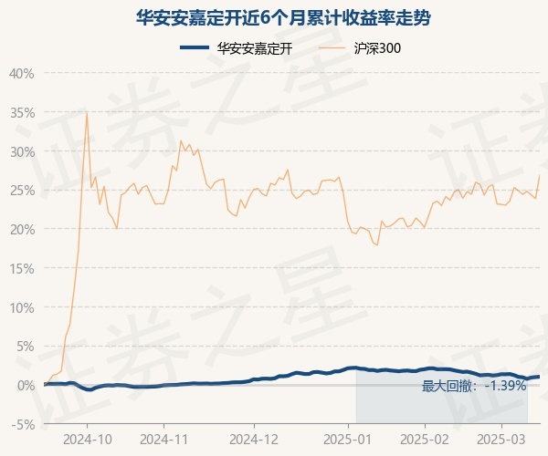证券之星消息,3月14日,华安安嘉定开最新单位净值为1.0387元,累计净值为1.1967元,较前一交易日上涨0.04%。历史数据显示该基金近1个月下跌0.8%,近3个月下跌0.34%,近6个月上涨0.98%,近1年上涨3.7%。该基金近6个月的累计收益率走势如下图:
