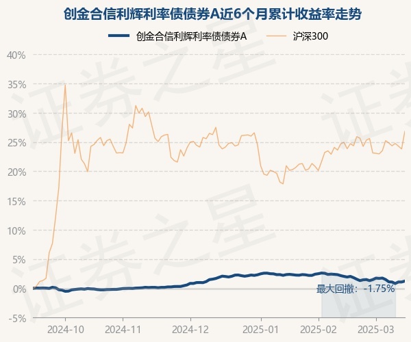 证券之星消息,3月14日,创金合信利辉利率债债券A最新单位净值为1.023元,累计净值为1.042元,较前一交易日上涨0.16%。历史数据显示该基金近1个月下跌0.91%,近3个月下跌0.63%,近6个月上涨1.24%,近1年上涨2.93%。该基金近6个月的累计收益率走势如下图: