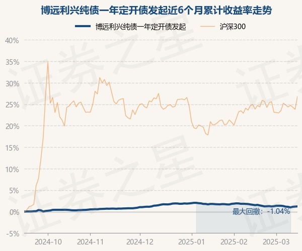 证券之星消息,3月14日,博远利兴纯债一年定开债发起最新单位净值为1.0332元,累计净值为1.0803元,较前一交易日上涨0.05%。历史数据显示该基金近1个月下跌0.44%,近3个月下跌0.4%,近6个月上涨1.21%,近1年上涨3.36%。该基金近6个月的累计收益率走势如下图: